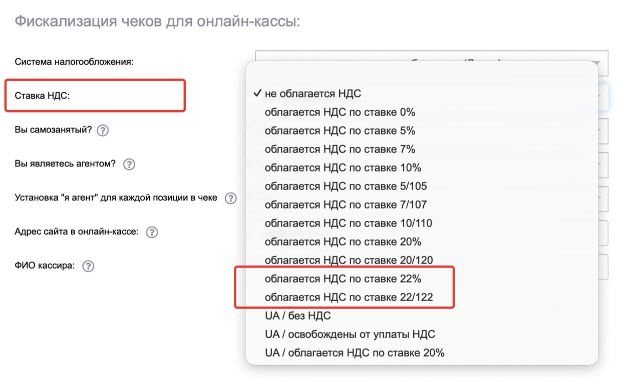 В настройки компании добавлены новые ставки НДС (раздел "Настройки - Моя компания", кнопка "изменить", блок "фискализация")