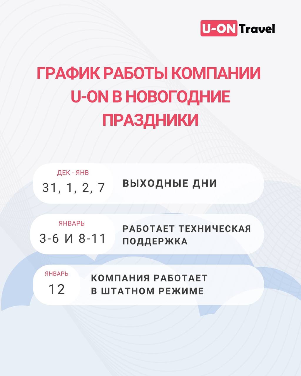 График работы компании U-ON в период Новогодних праздников