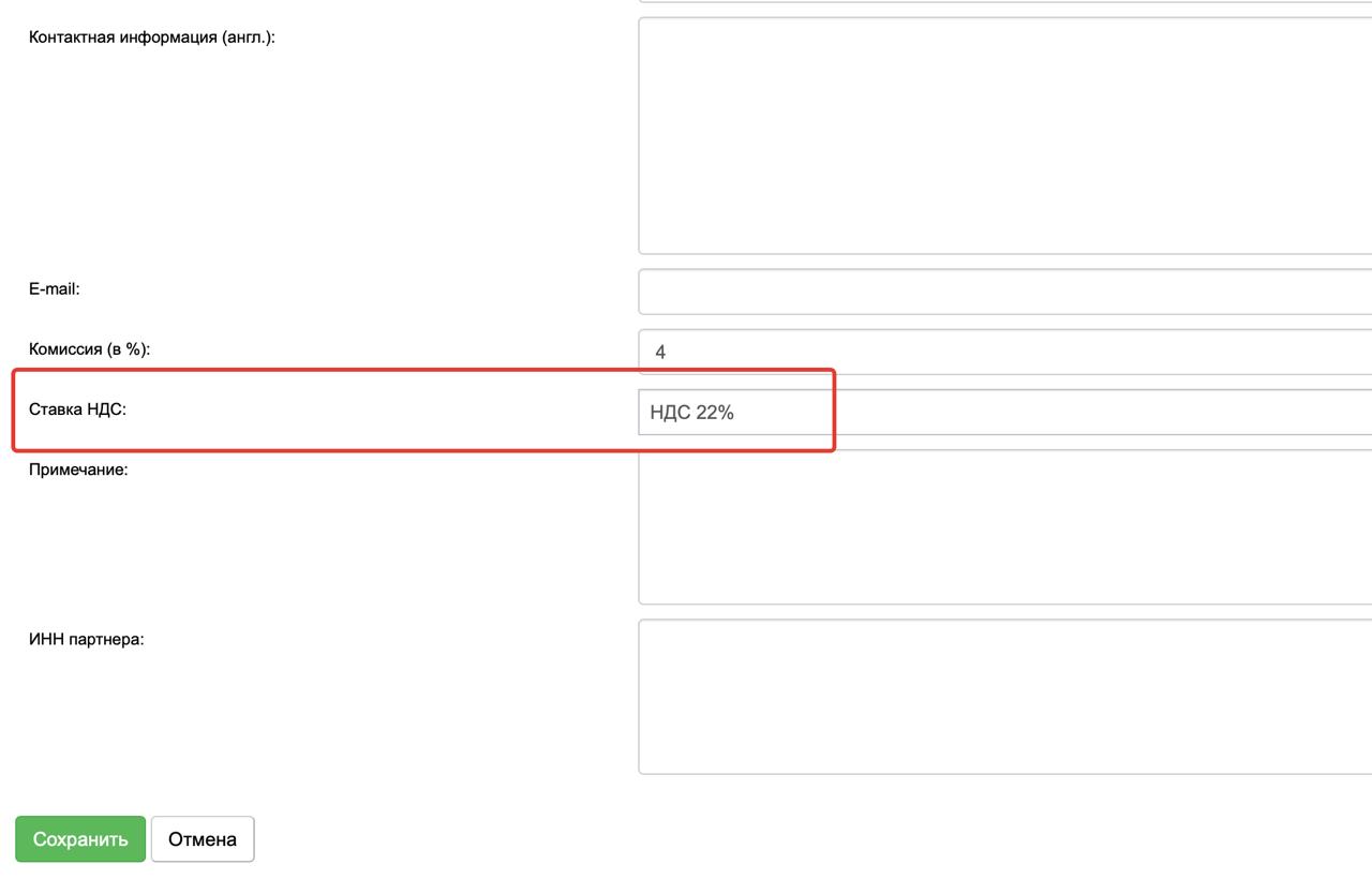 В карточку партнера добавили поле "Ставка НДС" + отображение этого поля в списке партнеров и возможность фильтрации по нему