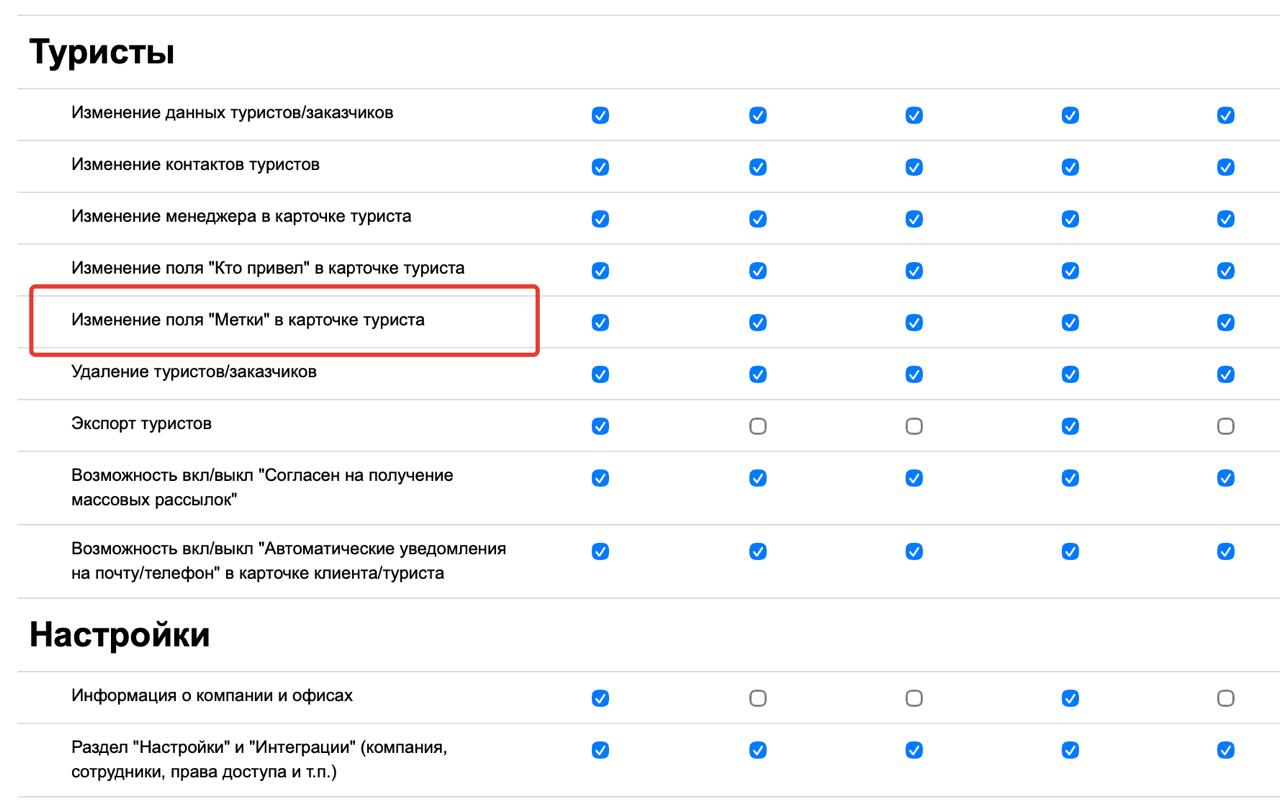 В настройках личного кабинета туриста добавлены новые права доступа (раздел "Настройки - Дополнительно - Личный кабинет туриста")